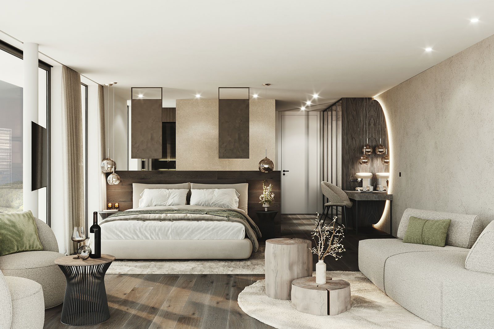 Großzügige Räume, feinste Materialien und eine zeitlose Designsprache schaffen eine Atmosphäre von unvergleichlicher Eleganz. Licht, Raum und Natur verschmelzen zu einer neuen Dimension des Wohlbefindens.