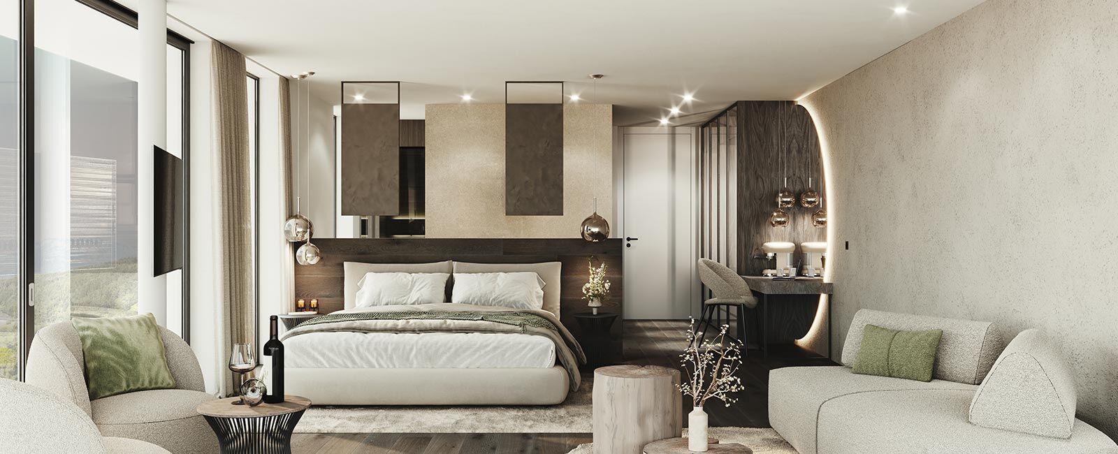 Die Fie Suite Armonia vereint alpinen Ausblick mit modernem Luxus und großzügiger Raumgestaltung. Das separate Schlafzimmer und der elegante Wohnbereich schaffen eine Atmosphäre voller Ruhe, Licht und Geborgenheit.