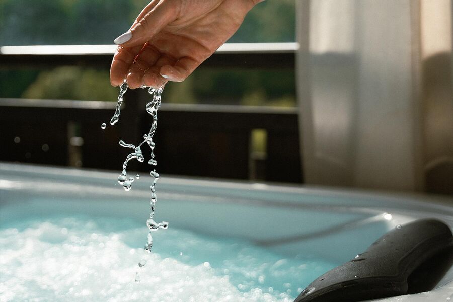 Im privaten Whirlpool wird Entspannung zu einem sinnlichen Erlebnis. Warmes Wasser, sanftes Licht und die klare Ästhetik des Raumes schaffen eine Atmosphäre, die gleichzeitig beruhigt und inspiriert.